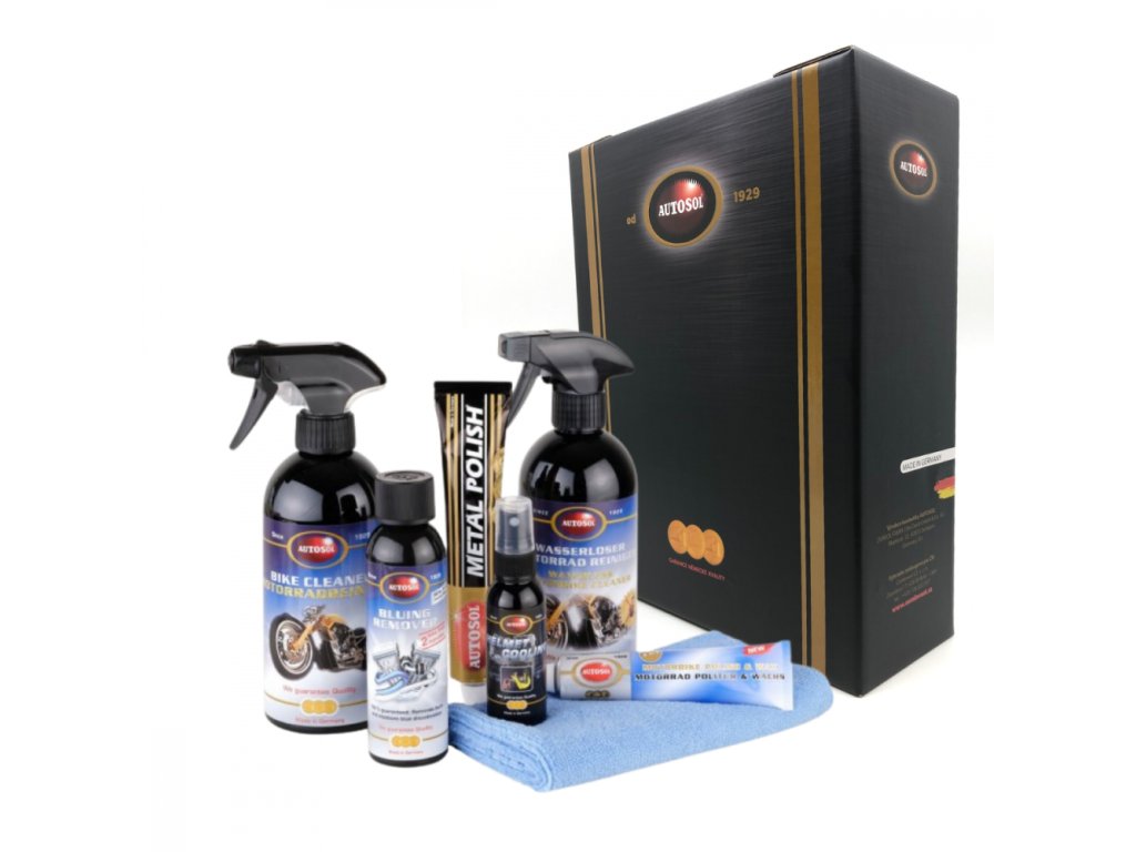Sada navržená pro všechny typy motorek — od silniček přes sportovní stroje až po cestovní a každodenní jezdce. Obsahuje klíčové přípravky a pomůcky pro kompletní údržbu: od základního čištění, přes péči o kovy a výfuky, až po ochranu laku a detailní péči o drobné části. Celá sada je zabalená v praktické dárkové krabici — ideální i jako dárek pro motorkáře nebo k Vánocům.