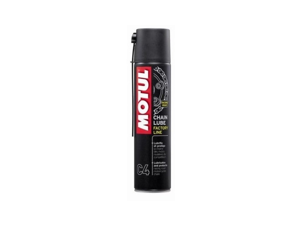 Motul C4 Chain Lube Factory Line je špičkové závodní mazivo vyvinuté pro sportovní, supersportovní a závodní motocykly, kde je řetěz vystaven vysokým otáčkám, extrémnímu zrychlení a horku. Je ideální pro okruhové jezdce i pro ty, kteří chtějí dát své motorce tu nejlepší profesionální péči i při běžných vyjížďkách.